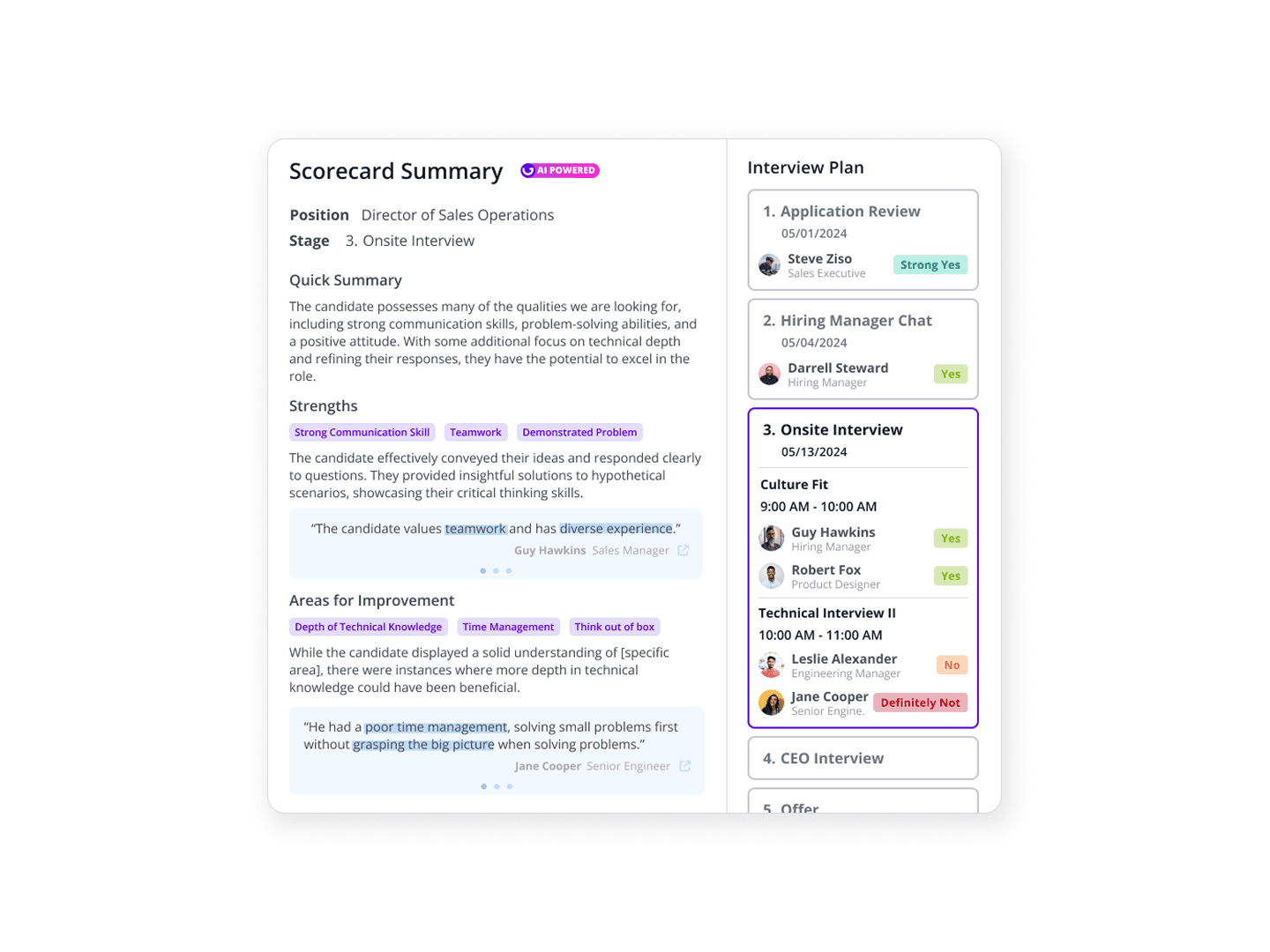 Research with 30+ recruiters found that interviewers lack prep time, prefer external note-taking tools over the ATS, and often delay scorecard submissions due to high workloads. These bottlenecks stall the hiring pipeline and risk losing top-tier talent to competitors.